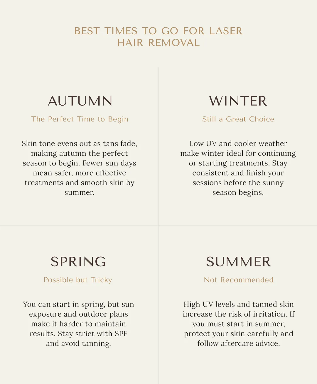 If you’ve been thinking about starting laser hair removal, timing really does make a difference. While it’s a treatment you can technically start any time of the year, some seasons make the whole process smoother, safer, and more effective.